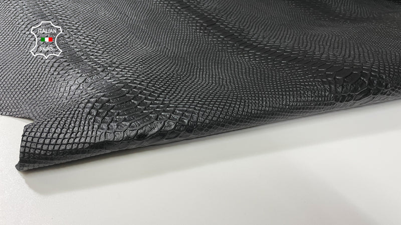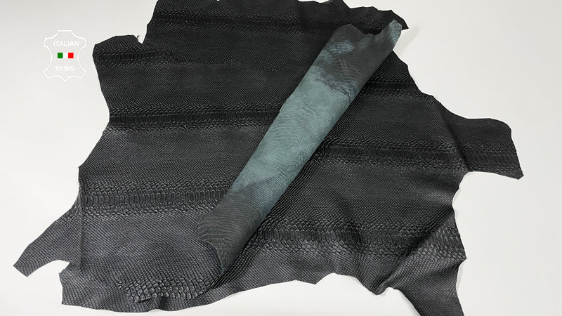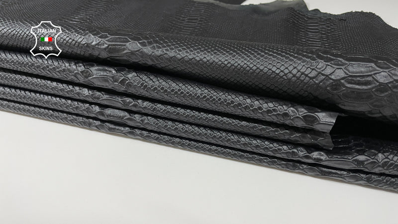 BLACK SNAKE TEXTURE EMBOSSED on Italian genuine leather skins
