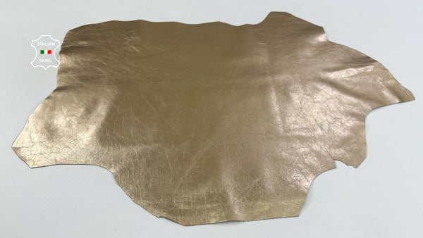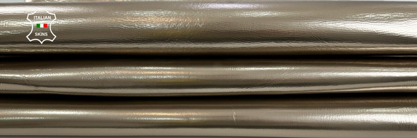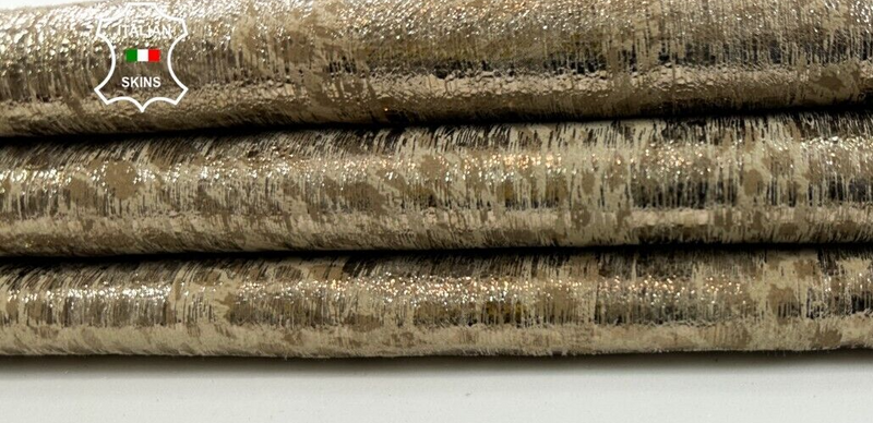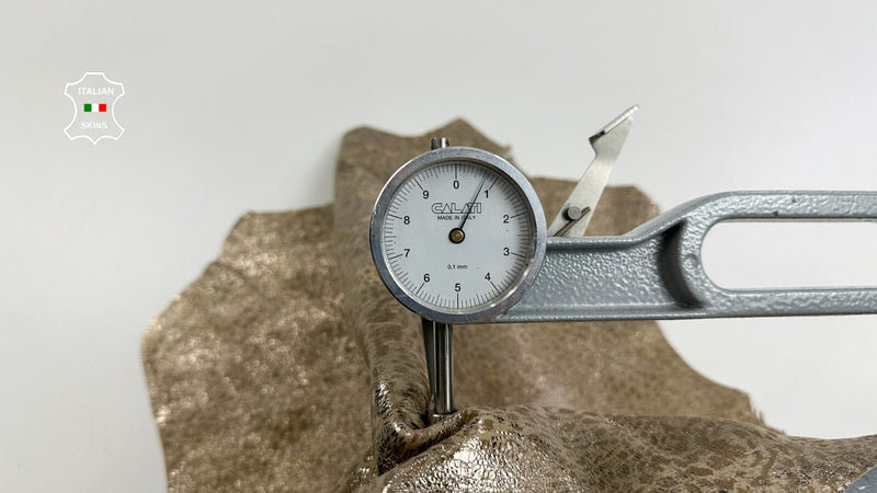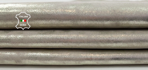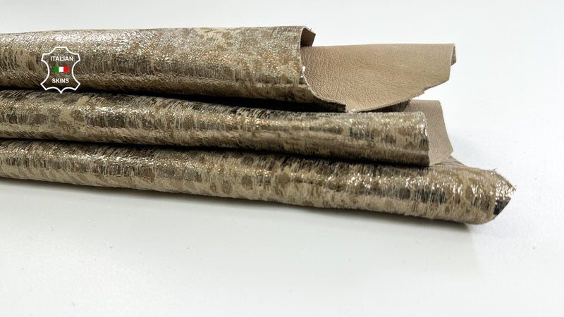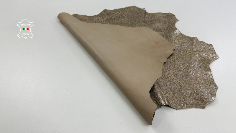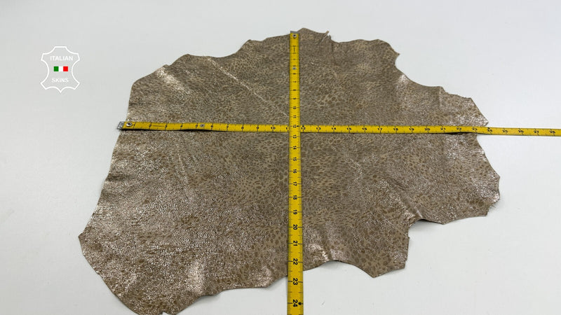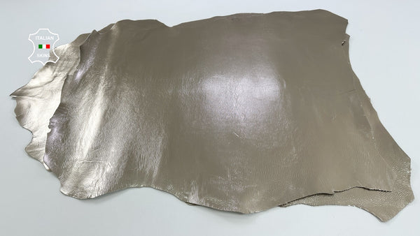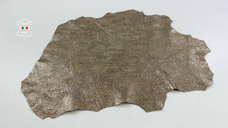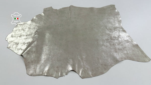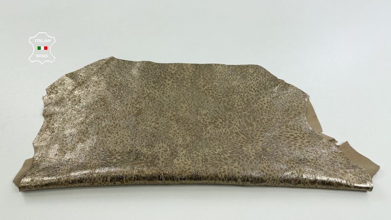 METALLIC PLATINUM CRINKLED ON BEIGE LEOPARD PRINT Goat Leather 3+sqf 0.8mm C4090